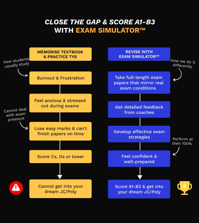 To help students quickly close their "Practice Gap" and score A1-B3 for O-Level math & physics, we have designed Singapore’s first & only Exam Simulator™.
